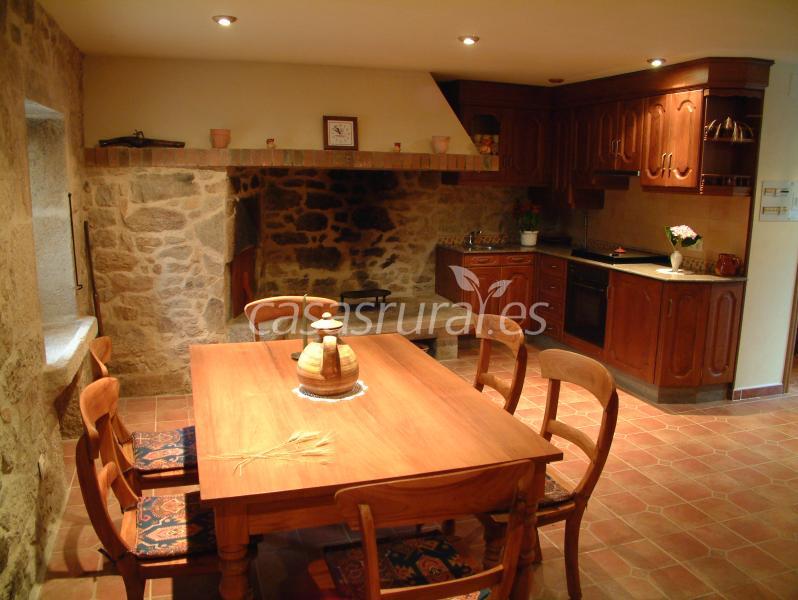Dispone de un amplio salón - cocina en el que se funden antiguo y moderno con esmerado gusto, lareira, microondas, lagar, televisión, iluminación, decoración.