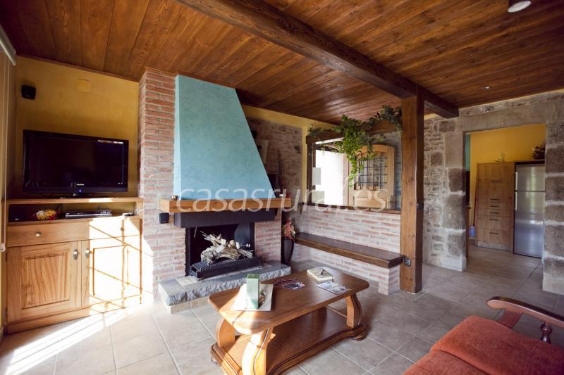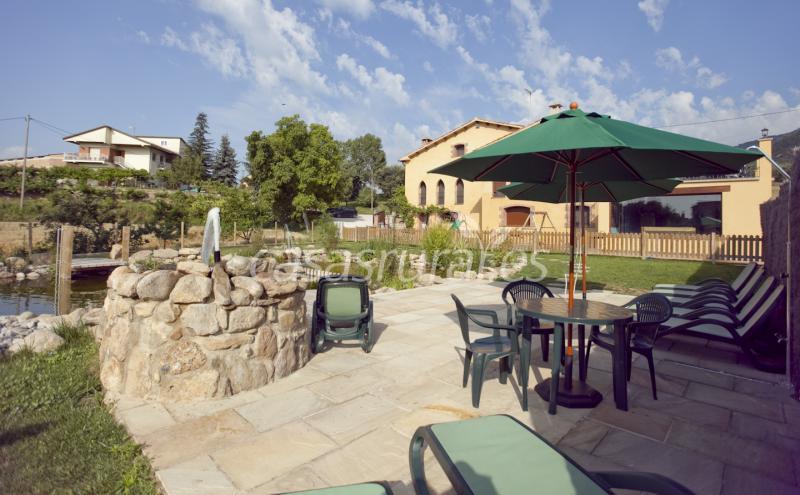 La casa dispone de 2 habitaciones de matrimonio, 2 habitaciones triples y 1 habitación doble, con baño en cada habitación, cocina, comedor con chimenea, porche con barbacoa y ping-pong, estanque de agua natural apto para el baño, parque infantil... y está totalmente equipada para 12-15 personas.
