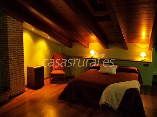 La buhardilla: habitación de 32 m/2 situado en la ultima planta del edificio. A destacar su cubierta inclinada de madera, baño completo con ducha y bañera hidromasaje, chimenea y unas espectaculares vistas que te enamoraran.