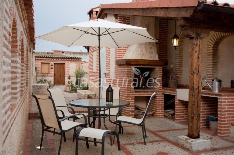 El patio concebido como espacio de descanso y diversión está bellamente decorado, se podrá disfrutar de una barbacoa, de su silencio, de su pequeño jardín… y si el tiempo no acompaña podemos bajar a la bodega centenaria a degustar un verdejo con los ladrillos mudéjares como testigos.