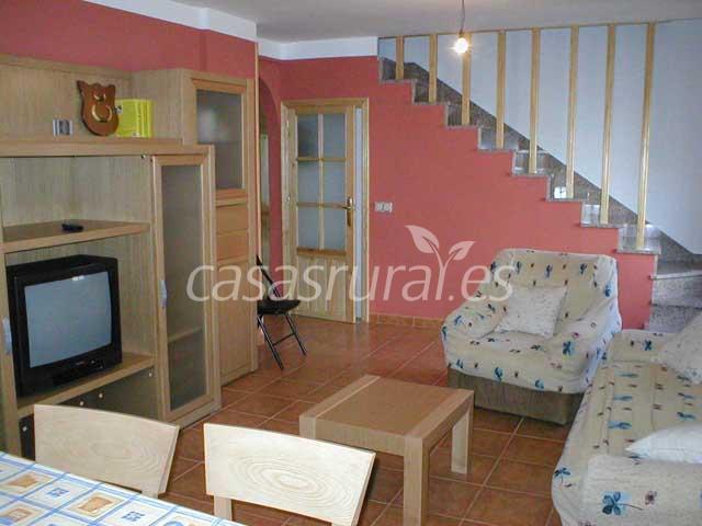 Es una casa de 2 alturas. Dispone de cocina completa, incluido microondas. Salón comedor 1ª planta con chimenea de leña. 2 habitaciones de Matrimonio. 1 hab. de 2 camas de 90cm. 1 hab. de una cama de 90 cm.